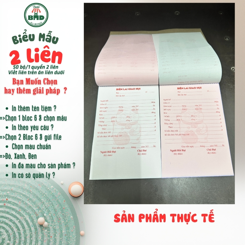 📝BIÊN LAI GIAO HỤI 2 LIÊN – BLOC 2 & BLOC 6 (In theo mẫu có sẵn hoặc thiết kế theo yêu cầu) 📦 SẢN PHẨM DẠNG BLOC 🔹 BLOC 2 QUYỂN (IN SẴN) Chọn mẫu có sẵn Phù hợp cần in nhanh – tiết...