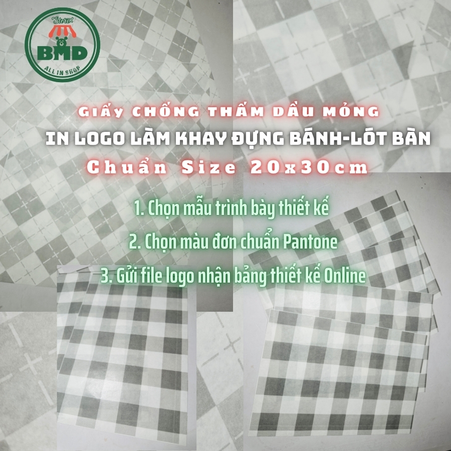 Giấy nến làm khay đựng Bánh-Lót Bàn in logo mỏng 28-38gsm chuẩn size 20x30 cm - Block 100 (nhanh 8h) & 3000 tờ (công nghiệp 24h)