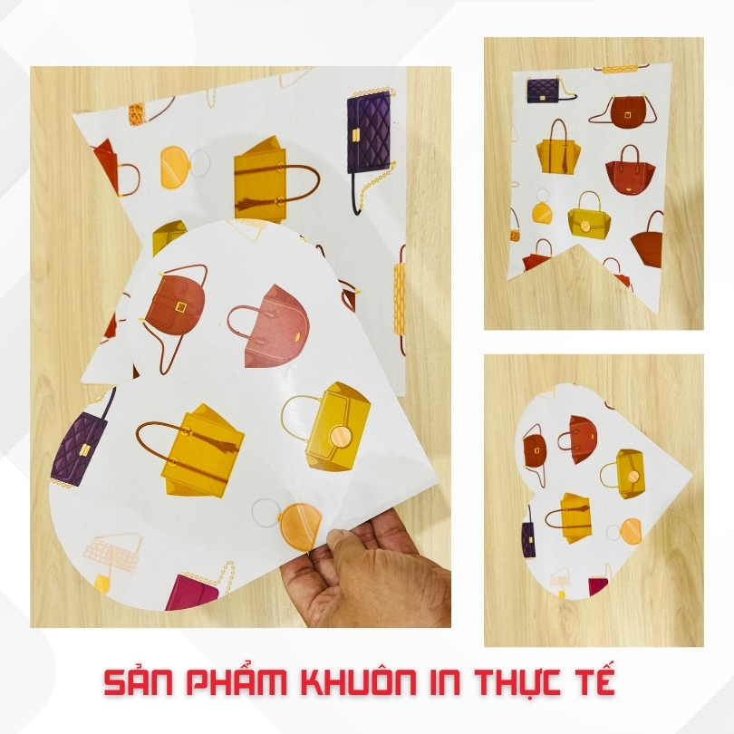 Giấy nến in đa màu (Perlure Paper) là loại giấy siêu mỏng, bề mặt mịn và sang trọng, có khả năng chống thấm dầu nhẹ, không dính thực phẩm, phù hợp cho nhiều mục đích đóng gói – trang trí – lót sản phẩm. Công nghệ in đa màu cho phép thể hiện logo, họa tiết thương hiệu, thông tin sự kiện, thiệp cảm ơn một cách sắc nét và tinh tế, giúp gia tăng giá trị sản phẩm khi trao tay khách hàng.